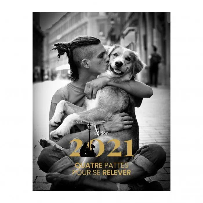 Après « L’animal comme Levier d’insertion » (2018), « Les bienfaits de l’animal pour soulager les souffrances de l’homme » (2019), « Chiens de SDF : ces compagnons du quotidien » (2020), cet ouvrage photos qui prend la forme d’un calendrier baptisé « Quatre pattes pour se relever » a pour thème pour son édition 2021 : « Gamelles Pleines encourage la complicité ».