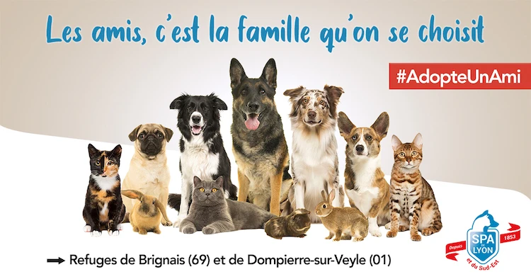 Pour cela, la SPA de Lyon et du Sud-Est reprend pour la troisièmement année consécutive ce même slogan : #AdopteUnAmi(Les amis, c’est la famille qu’on se choisit). Un slogan qu’elle partage sur ses réseaux sociaux mais également en affichage sur le réseau de transports en commun de la ville de Lyon (TCL).