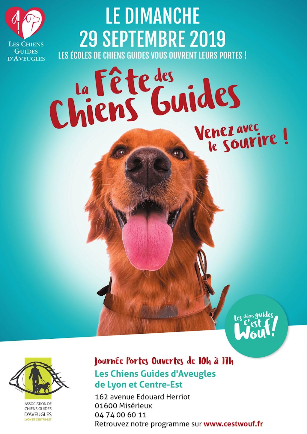 Pour les lecteurs habitant Lyon et sa région, retrouvez les Chiens Guides d'aveugles lors de la 11ème journée du Chien Guide, le 29 septembre 2019 de 10h à 17h au 162, avenue Edouard-Herriot, 01600 Misérieux (plus d'infos, tél. : 04.74.00.60.11).