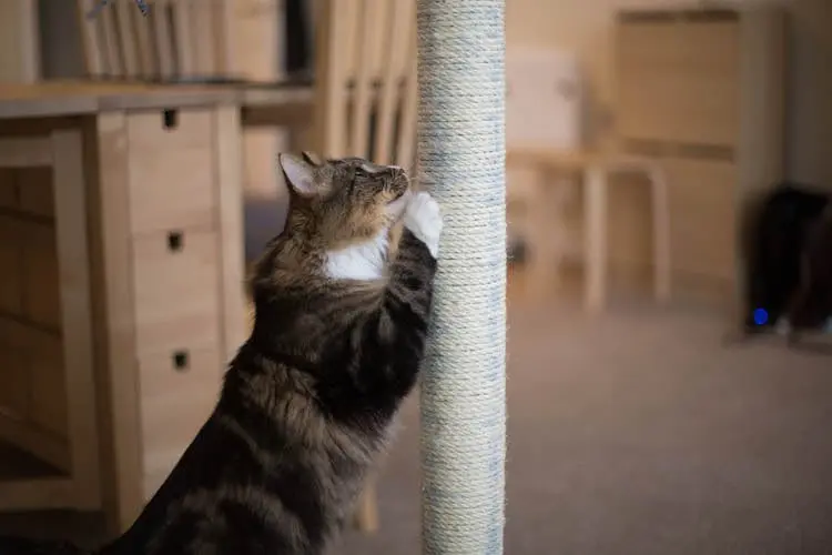 Pour contrôler les griffades chez le chat, la première chose à faire est de lui mettre à disposition un griffoir ou un arbre à chat suffisamment grand et solide.
