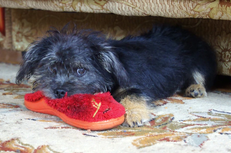 Ce n’est pas spécifique aux chiots. N’importe quel chien, à tout âge, peut être curieux et joueur face à un objet. Ce peut être un de ses jouets, mais aussi tout ce qui « traîne » et est à sa portée dans la maison.