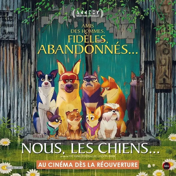 Nominé au Festival du Film Coréen à Paris 2019, au Festival du Film d’Animation d'Annecy 2019 et Grand Prix du jury enfant au Festival Voir Ensemble 2020, Nous, les chiens fait partie des premiers films qui seront distribués après le confinement. Le premier film d’animation en salles le 22 juin.