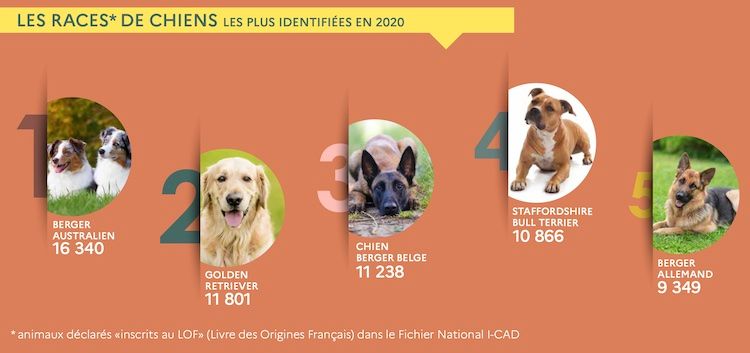 - - Les chiens de race Berger Australien occupent le haut du podium aux côtés des chiens d’apparence raciale Labrador, largement présents dans les foyers.