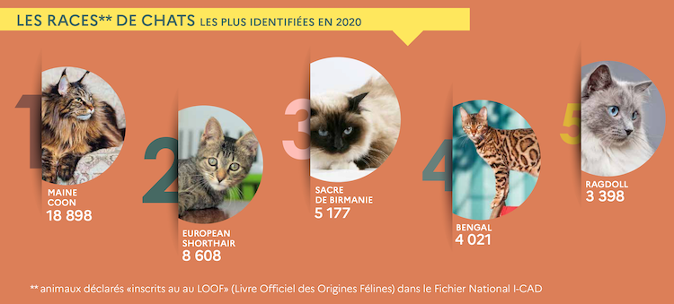 - - Si les chats d’apparence raciale Européen sont, en écrasante majorité, les plus présents dans les foyers, ce sont les Maine Coon qui occupent la première place des chats de races en France.