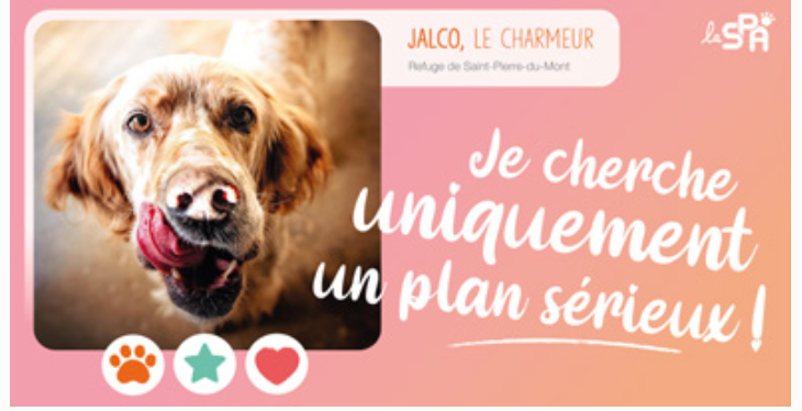 Mais à l’heure où les codes évoluent et les sites de rencontres se développent toujours autant, la SPA a choisi de lancer une campagne éphémère qui s’inscrit dans l’ère du temps et place la SPA comme un référent sérieux ! Celle-ci est baptisée « À la SPA, ils cherchent tous un plan sérieux », se décline en 3 visuel (chien, chat, NAC) avec chacun pour slogan : « Je cherche uniquement un plan sérieux ! »