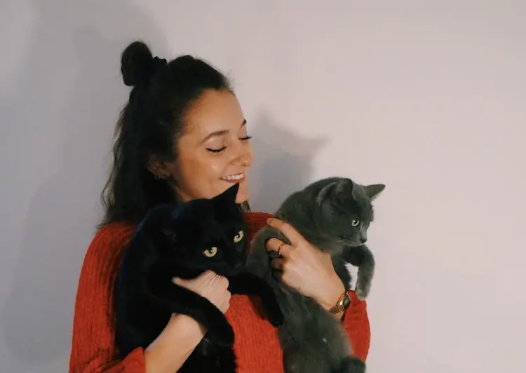Ses deux chats, que vous pouvez voir sur sa photo, sont ses sources d’inspiration au quotidien !