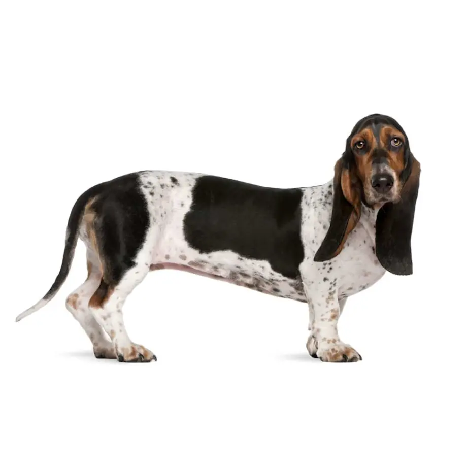 Le Basset Hound est un chien assez lourd et trapu, avec un corps long et des oreilles tombantes. Il est surtout utilisé pour suivre une piste sur de longues distances, là où il peut se montrer très patient et méthodique.