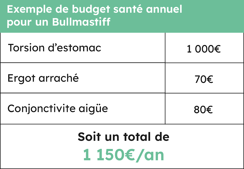 Voici l'exemple d'un budget santé pour un Bullmastiff :