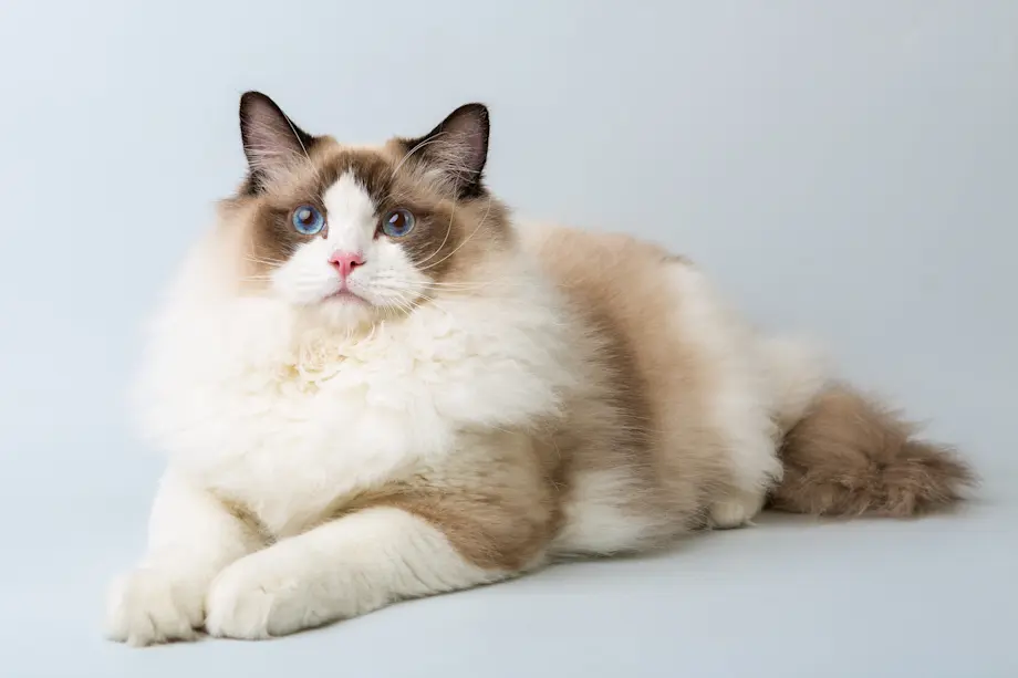 - Le Ragdoll se distingue par ses yeux bleus, son pelage mi-long colourpoint et sa nature affectueuse.