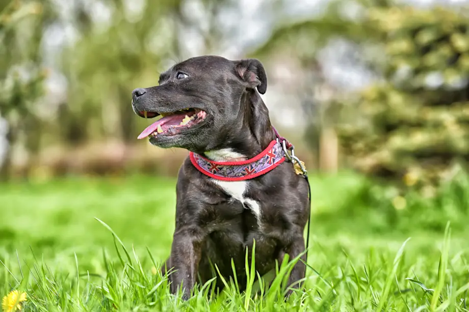 Originaire d’Angleterre, le Staffordshire Bull Terrier est passé d’un chien de combat à un compagnon loyal et affectueux.